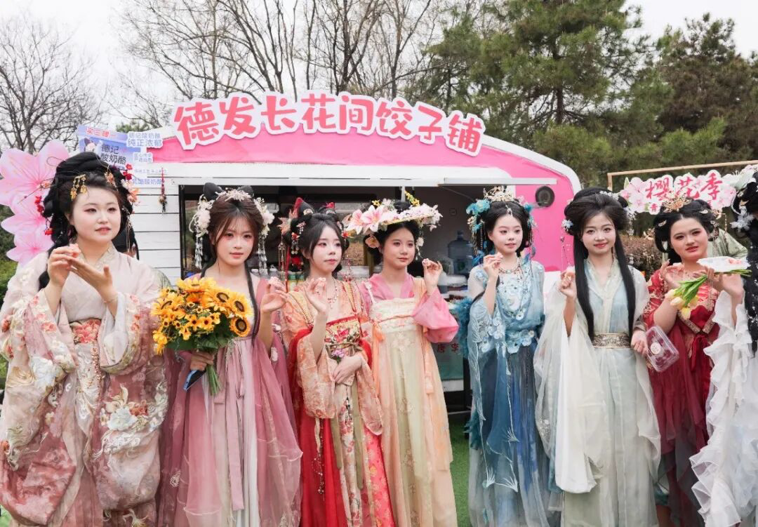 在櫻花爛漫的青龍寺,唐詩(shī)飛花令趣味上演。詩(shī)人NPC與游客現(xiàn)場(chǎng)對(duì)詩(shī)接龍,贏取櫻花酥、青團(tuán)、祈福柳枝與春日飲品,在繁花之下赴一場(chǎng)浪漫詩(shī)意之約?,F(xiàn)場(chǎng)更有老字號(hào)非遺技藝展演精彩亮相,傳統(tǒng)匠心與春日詩(shī)意相映成趣,盡顯長(zhǎng)安獨(dú)有的風(fēng)雅食韻。