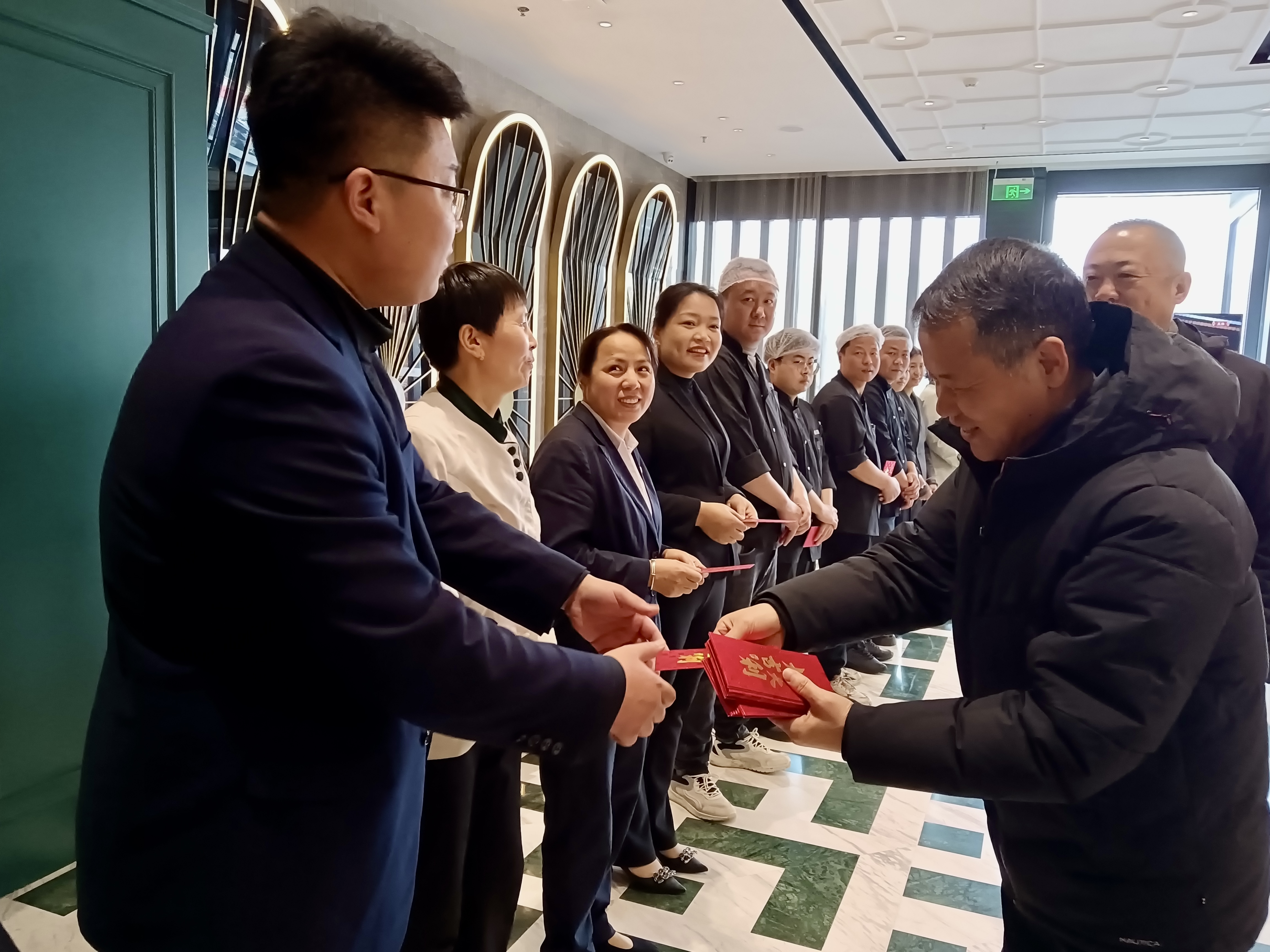 “大家辛苦了!給大家拜年!”蔣建軍來到鉑金萬澳·勝利飯店與在崗員工親切握手、熱情交談,詳細了解節(jié)日期間員工的后勤保障情況,實地查看安全生產(chǎn)措施落實及假期經(jīng)營運行狀況。對大家在過去一年的辛勤付出及做出的貢獻表示衷心感謝,并將一個個飽含祝福的新春紅包送到員工手中,感謝大家以“不待揚鞭自奮蹄”的擔(dān)當(dāng)精神,在萬家團圓的時刻依然堅守一線,保障了公司的正常運轉(zhuǎn)和游客的舒心體驗。